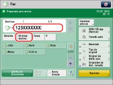 Compruebe la información del destino → pulse [Aceptar] → [Aceptar].