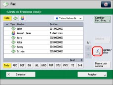 Si desea seleccionar varios destinos, seleccione la lista de direcciones de destino → pulse [Aceptar]. Si ha activado [Gestionar núms. acceso libretas direcciones], pulse [Nº de acceso].
