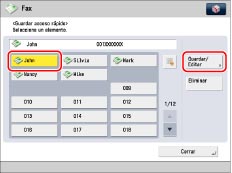 No puede guardar nuevos destinos en un destino de grupo que esté guardado en una tecla de acceso directo. Los destinos se deben guardar de antemano en las teclas de acceso rápido.