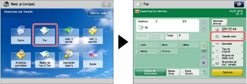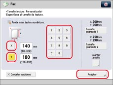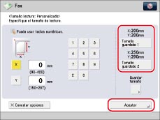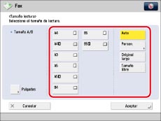 Si envía un fax en el modo Envío directo o Envío manual, y pone los originales en el alimentador, se desactivará la opción Tamaño de lectura que especifique.