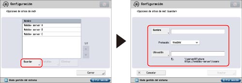Seleccione [SMB] o [WebDAV] para el protocolo.