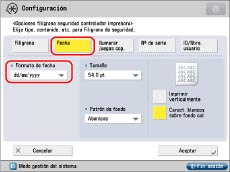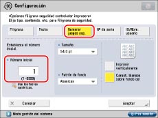 Si se establecen simultáneamente [Filigrana de seguridad controlador impresora] y [Filigrana de seguridad obligatoria] para una impresora, tendrá prioridad Filigrana de seguridad obligatoria.