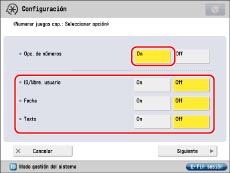Puede especificar las opciones detalladas del modo Numerar juegos de copias para las funciones Copia/Buzón. Para más información acerca del modo Numerar juegos de copias, consulte