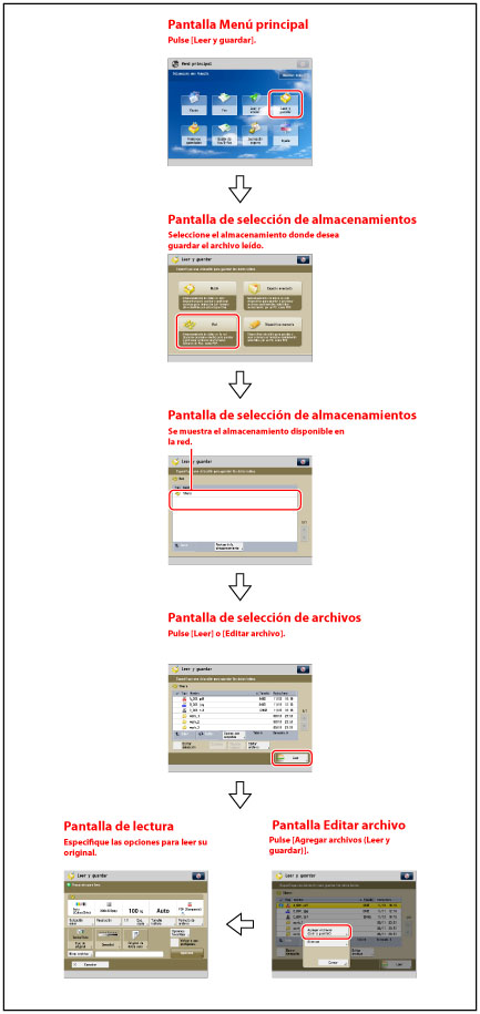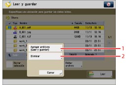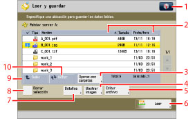Para conocer las instrucciones acerca de cómo ordenar las carpetas, consultar la información detallada del archivo y editar o eliminar archivos, consulte "Archivos guardados".