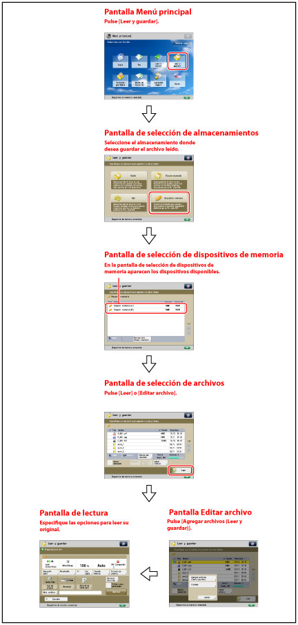 El original se lee y guarda en el dispositivo de memoria. |