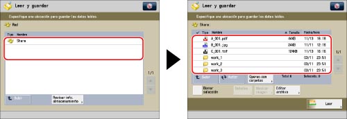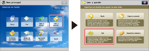 Para utilizar la ubicación de almacenamiento de red, debe configurarla de antemano según sus necesidades. Para más información, consulte "Opciones de espacio avanzado/red".