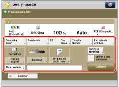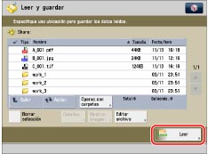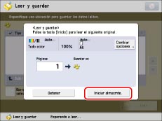 Puede seleccionar y guardar hasta 999 páginas a la vez. Si los originales de doble cara se leen usando el alimentador, se pueden guardar hasta 1.000 páginas. Cuando se llega al máximo de originales que se pueden leer, aparece un mensaje preguntándole si quiere guardarlos.