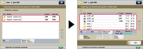 La opción predeterminada para visualizar el dispositivo memoria es 'Off'. Para poder utilizar dispositivos de memoria, active [Opciones de vista ubicación almacenamiento]. (Consulte "Opciones de vista ubicación almacenamiento".)