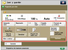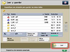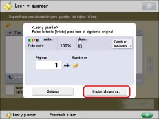 Puede seleccionar y guardar hasta 999 páginas a la vez. Si los originales de doble cara se leen usando el alimentador, se pueden guardar hasta 1.000 páginas. Cuando se llega al máximo de originales que se pueden leer, aparece un mensaje preguntándole si quiere guardarlos.