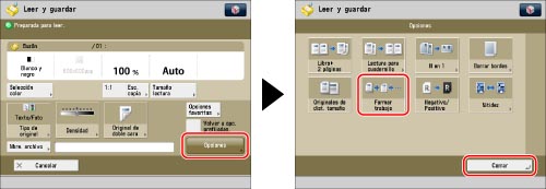 Sólo es posible cambiar las opciones que aparecen en [Cambiar opciones] mientras se encuentra en el modo Formar trabajo. Es necesario especificar de antemano las opciones de lectura pertinentes.