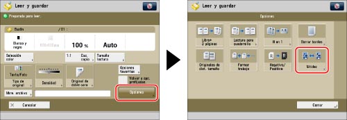 Si utiliza el espacio avanzado, el espacio avanzado de otro equipo de la red o un dispositivo de memoria, la opción para [Nitidez] no es válida si se cumplen todas estas condiciones. La opción se refleja en la imagen mostrada para [Mostrar imagen], pero no para la imagen leída real.