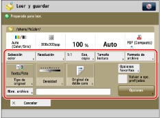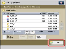 Puede seleccionar y guardar hasta 999 páginas a la vez. Si los originales de doble cara se leen usando el alimentador, se pueden guardar hasta 1.000 páginas. Cuando se llega al máximo de originales que se pueden leer, aparece un mensaje preguntándole si quiere guardarlos.
