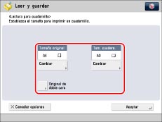 No puede seleccionar [Original de doble cara] si el tamaño del original seleccionado es A6R.