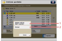 Se pulsa para eliminar los archivos guardados en la carpeta. Puede seleccionar y eliminar hasta 32 archivos a la vez.