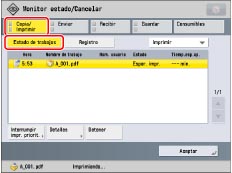 Pulse [Copia/Imprimir] → [Estado de trabajos].