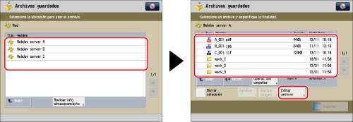 Seleccione la ubicación de almacenamiento que desee → seleccione el directorio en el que desee guardar el archivo → pulse [Editar archivo].