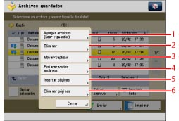Se pulsa para fusionar varios archivos e imprimirlos como si fueran uno solo. Esta tecla aparece únicamente cuando se seleccionan varios archivos. |