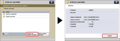 Pulse [Archivos guardados] → [Espacio avanzado].
