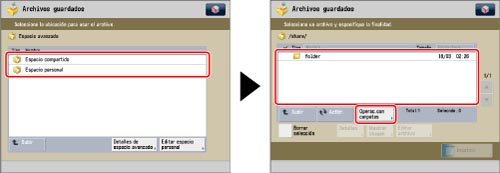 Seleccione el espacio de almacenamiento que desee → seleccione el nivel de carpeta adecuado → pulse [Operac.con carpetas].
