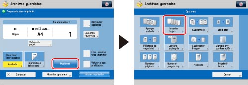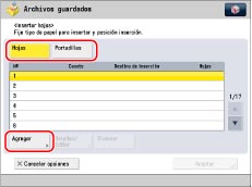 Si desea establecer tanto [Insertar hojas] como [Agregar portada], seleccione el mismo tamaño de papel.