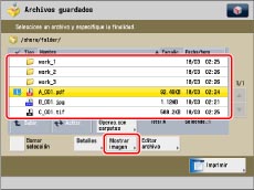 Si selecciona varios archivos y pulsa [Mostrar imagen], sólo aparece el contenido del archivo seleccionado (resaltado).