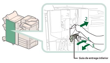 1. Incline la guía de salida hacia la derecha. |