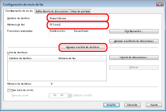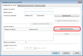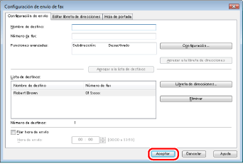 Si ha seleccionado [Reintroducir el número de fax antes de agregar el destino a [Lista de destinos]] en el cuadro de diálogo [Opciones seguridad] de la hoja [Especial], se mostrará el cuadro de diálogo [Confirmar contraseña] al hacer clic en [Agregar a la lista de destinos]. Para obtener más información, consulte la ayuda en línea (consulte "Visualización de la Ayuda en línea").