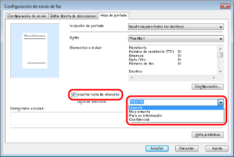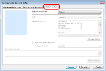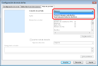 Para incluir una portada en el fax, siga el procedimiento que se describe a continuación.