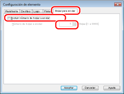 Si quiere incluir en la portada el número de hojas que va a enviar, seleccione [Incluir número de hojas a enviar] en [Hojas para enviar] → seleccione [Incluir número de hojas a enviar] → especifique el número de hojas.