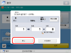 如果在本机正在复印或等待复印时弹出的屏幕上按[停止],则可以取消正在复印的作业或取消等待复印的已扫描原稿的最后一项作业。