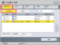 可以从串联复印打印机的“状态确认/取消”屏幕取消串联复印作业。在这种情况下,不会取消本机正在处理的串联复印作业。