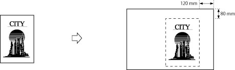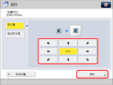 如果选择[按位置],并且原稿和复印纸张的尺寸相同,同时复印倍率设置为100%,则不能移动原稿的图像。