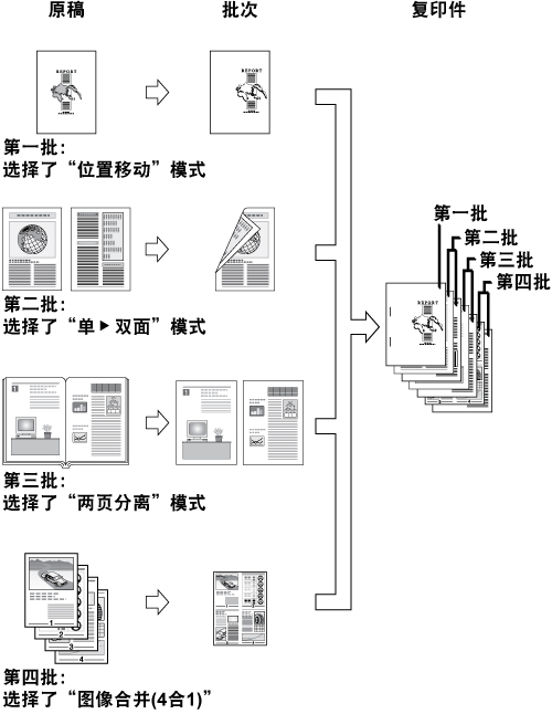 如果设置[合并作业批次],则将对每一批原稿自动设置“作业创建”模式。已合并的文档不能使用“作业创建”模式。