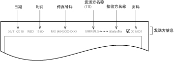 如果将本机设置为在记录纸的最上面打印发送记录,并且有的项目没有注册,那么只打印注册的项目及原稿总页数。