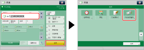 要发送作业完成通知,需要预先将电子邮件地址存入“本地地址簿”或单触按钮。