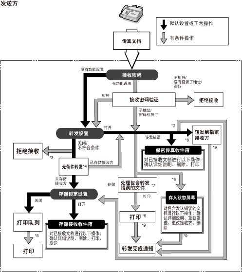 *4 如果在[转发设置]中设置了[无条件转发],所有不符合指定转发条件的已接收文档将转发给“无条件转发”中选定的接收方。