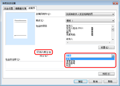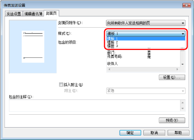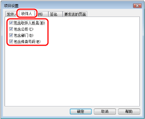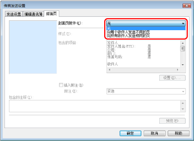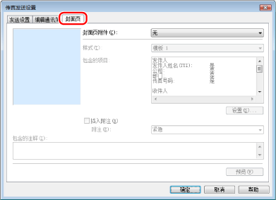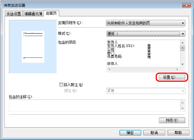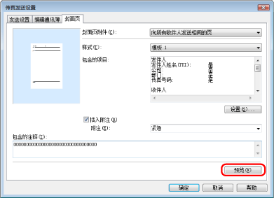 在[发送设置]页中指定的收件人信息打印到封面页上。