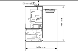 安装了“双面自动输稿器-AG1”、“内置装订处理器-D1”、“内置打孔组件-A1”和“纸仓-B2”时