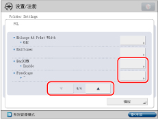 启用了“条形码打印”功能时,“设置/注册”屏幕的“配置页”上会出现[BarDIMM]和[FreeScape]。