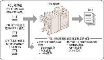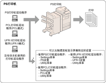 UFR II、PCL、PS和直接打印打印机操作的差异性