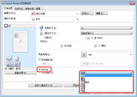 可以在使用应用程序创建的文档上打印水印(如“机密”或“副本”)。除预定义的水印外,也可以注册自定义水印。