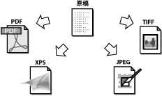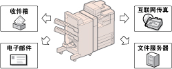 可以发送各种文件格式的文档,包括PDF、XPS、JPEG和TIFF。这样,用户可以根据文档用途和接收方的文档操作环境自由选择最适合的文档发送方式。