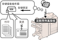 可以将已接收互联网传真文档存入“存储接收收件箱”而不打印。然后,可以在打印或转发至其他接收方前检查发送方信息及每个文档包含的页数。