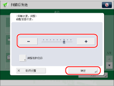 如果通过按<背景浓度>的[调整]调整背景浓度,则会取消[自动]设置。同样地,如果在[调整]中对浓度进行手动调整时按[自动],则会取消所做的调整。本机会自动将浓度调整到适合背景的水平。