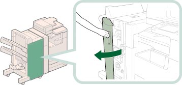 清除鞍式装订处理器中的卡针前,请取出所有输出到书本托盘的纸张。