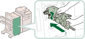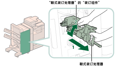 2. 朝身体方向拉出鞍式装订处理器的装订组件,然后将其向上推。 |