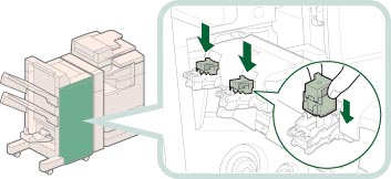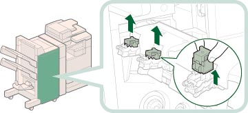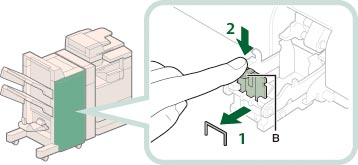 清除卡针后,务必手动复位鞍式装订处理器中的装订针。(See "鞍式装订处理器装订针复位.")