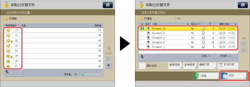 选择所需“存储箱”→选择所需文件→按[打印]。