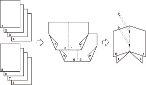 一次最多可以鞍式装订16张。如果要鞍式装订17张或更多张,请设置“已分割的书本”模式。