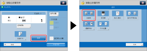该模式只能用于打印存储在“高级存储箱”、网络上其他imageRUNNER ADVANCE机器的“高级存储箱”或存储介质中的文件。